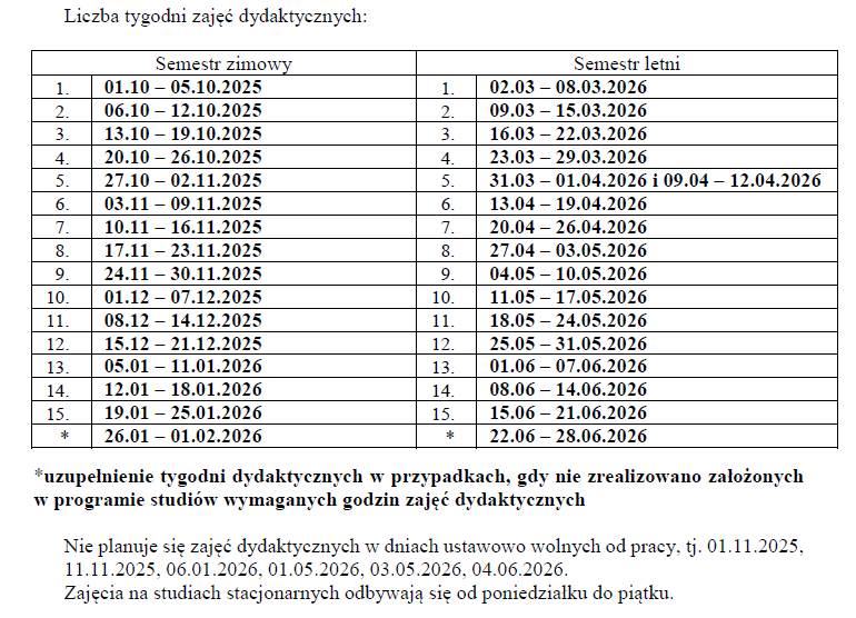 - W dniu 8.10.2025 r. zostają odwołane zajęcia z mgr. inż. Wojciechem Psikiem dla I roku kierunku Zarządzanie i inżynieria produkcji